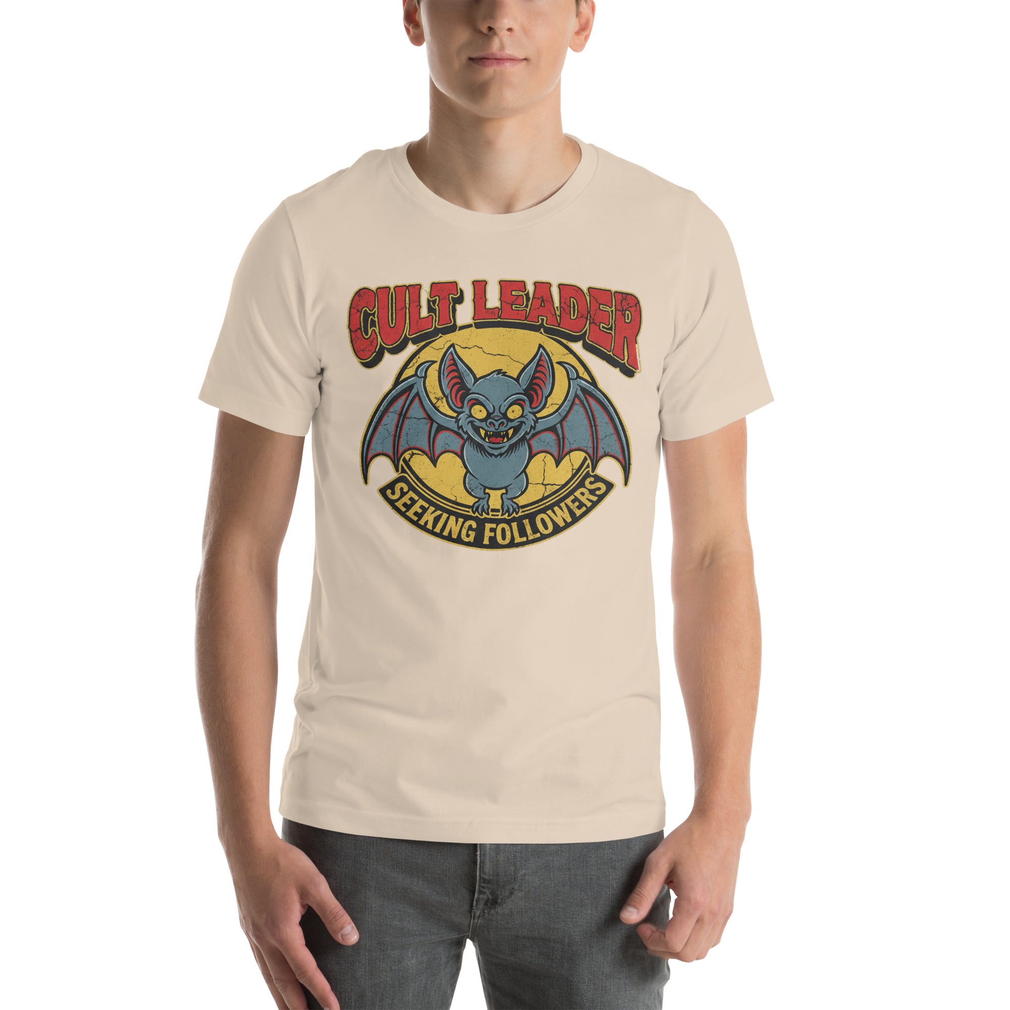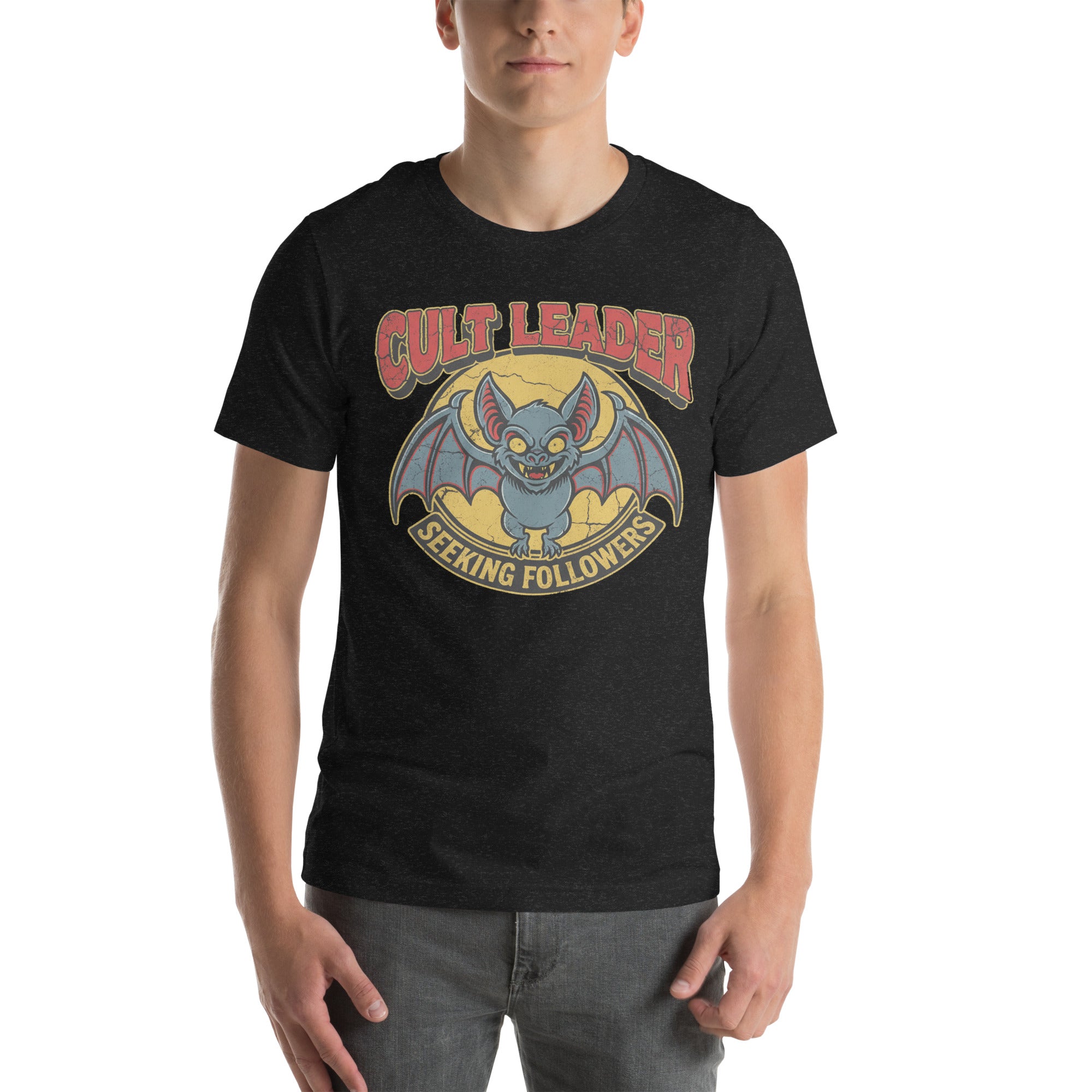 Stand out from the crowd with this bold and quirky “Cult Leader – Seeking Followers” Ringer Tee.